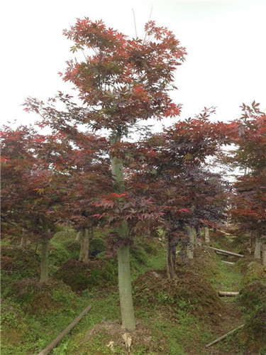 紅楓是一種非常美麗的觀葉樹種,其葉形優(yōu)美,紅色鮮艷持久,枝序整齊,層次分明,錯(cuò)落有致,樹姿美觀。廣泛用于園林綠地及庭院做觀賞樹,以孤植、散植為主,宜布置在草坪中央,高大建筑物前后、角隅等地,紅葉綠樹相映成趣。它也可盆栽做成露根、倚石、懸崖、枯干等形狀,風(fēng)雅別致。