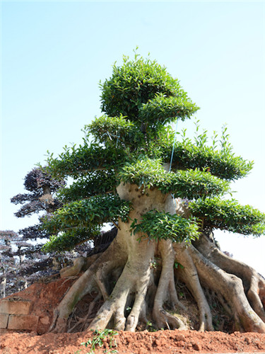 造型杜英:選用生長(zhǎng)于山谷里的原生杜英和古樹樁進(jìn)行移植栽培,運(yùn)用蟠扎,牽拉,修, 剪 等手法制作出形態(tài)各異的造型杜英和杜英盆景。