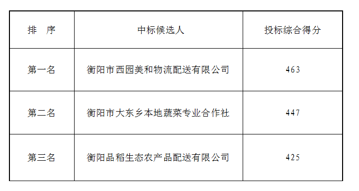衡陽(yáng)弘湘食堂食材(蔬菜類)公開(kāi)比選候選人公示