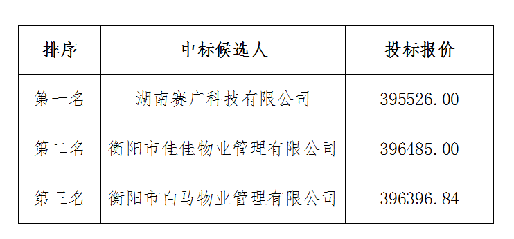 衡陽視界科技發(fā)展有限公司物業(yè)服務(wù)項(xiàng)目中標(biāo)候選人公示