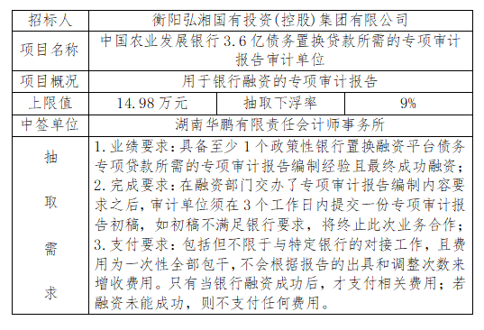 中國農(nóng)業(yè)發(fā)展銀行3.6億債務(wù)置換貸款所需的專項審計報告審計單位隨機抽取結(jié)果公示